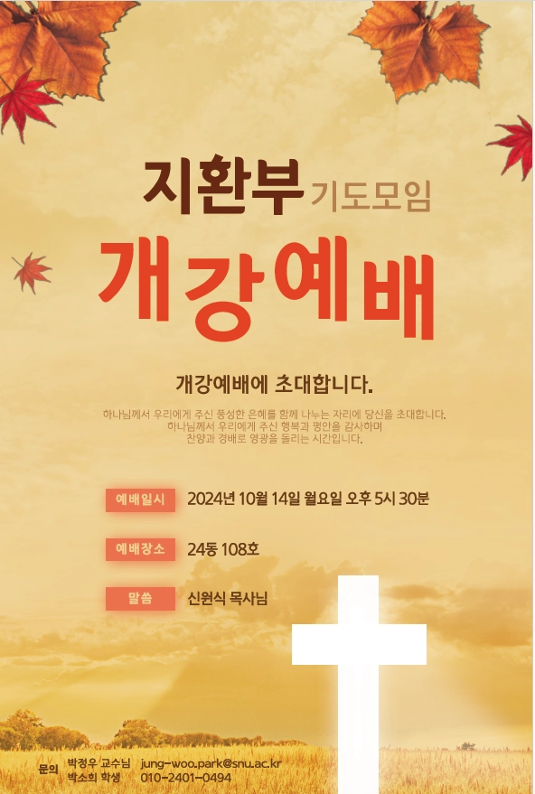 대학 생활 중 신앙을 나누고 믿음을 지켜갈 자연대 학우 모든 분들을 환영합니다! 아직 신앙이 없으시거나, 고민 중인 분들 또한 기독교에 관심이 있다면 누구나 편하게 참여하실 수 있으니 부담 없이 참여해주세요! 지금은 자연대 학과 중, 화학부와 지구환경과학부를 중심으로 모임이 운영되고 있는 상황이지만, 관심 있는 분이 계시다면 저에게 편하게 연락주시면 과 동아리나 소모임으로 이어드리도록 하겠습니다. 따뜻한 공동체 안에서 함께 이야기 나누고 싶은 분이라면 누구든 환영합니다. 언제든 편하게 찾아와 주세요!