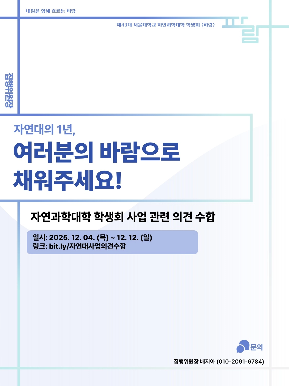 안녕하세요, 제43대 서울대학교 자연과학대학 학생회