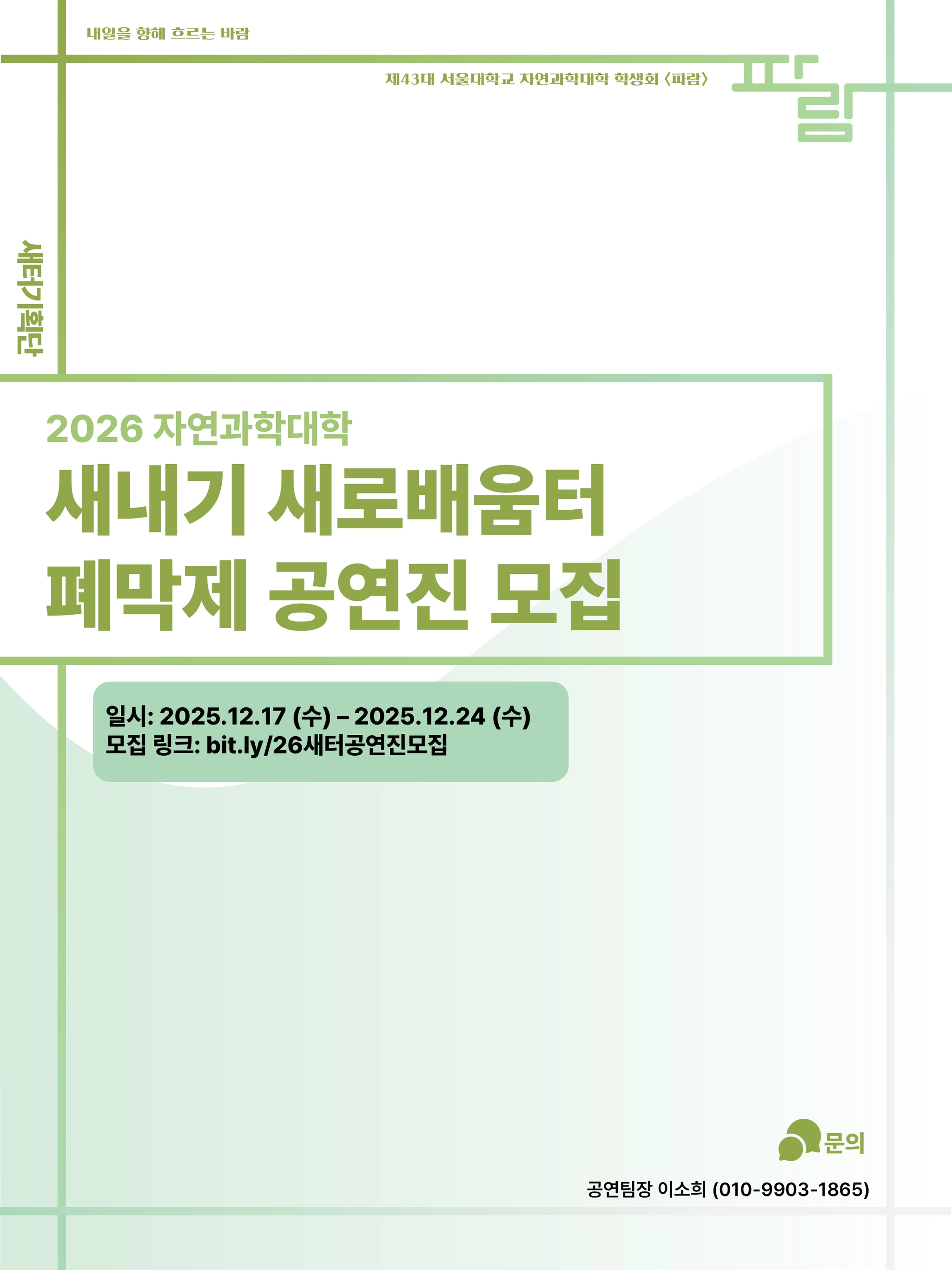 2026학년도 자연과학대학 새터 폐막제 공연진 모집
