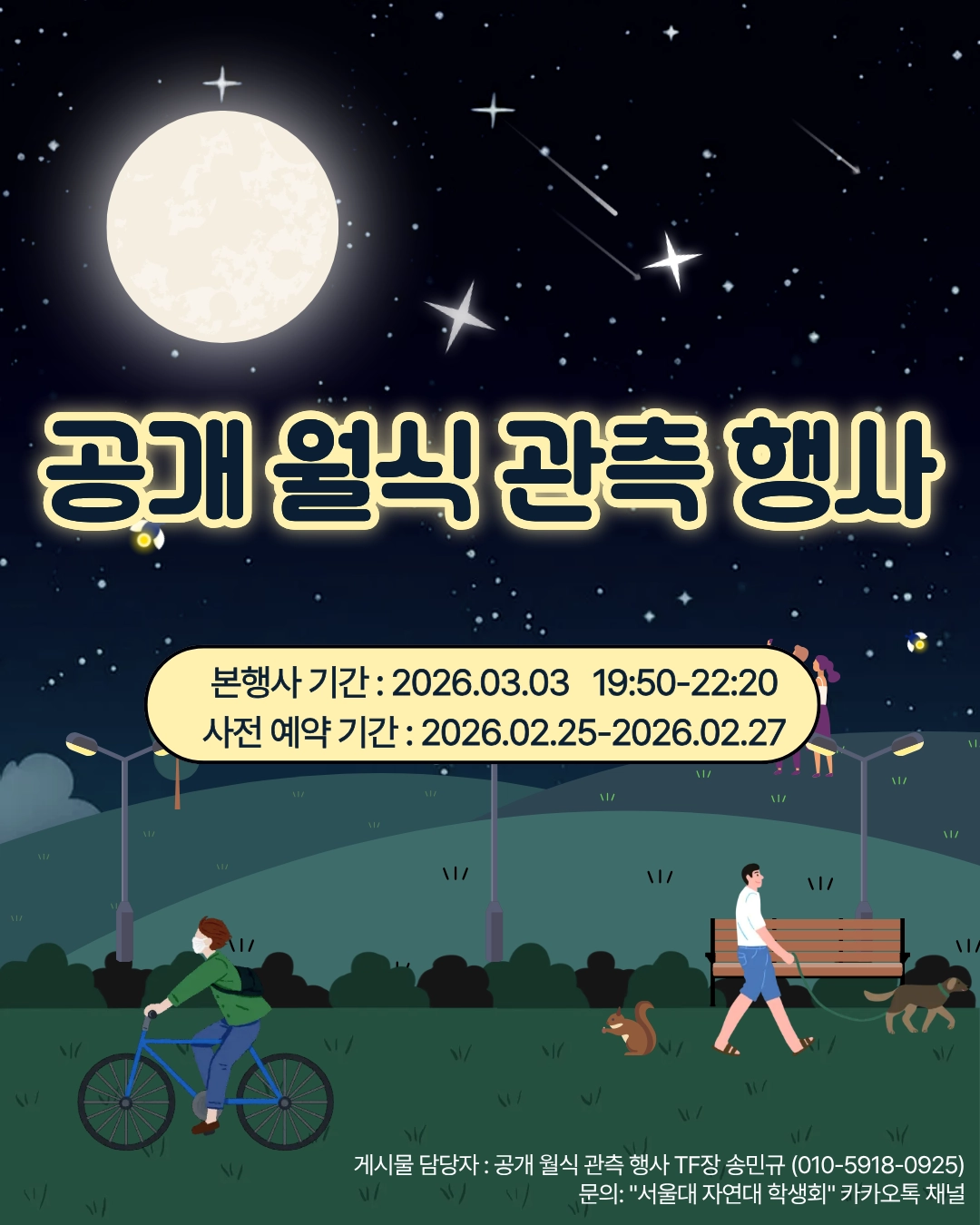 다가오는 3월 3일 개기월식을 맞아 서울대학교 구성원을 대상으로 공개 월식 관측 행사를 진행합니다!
