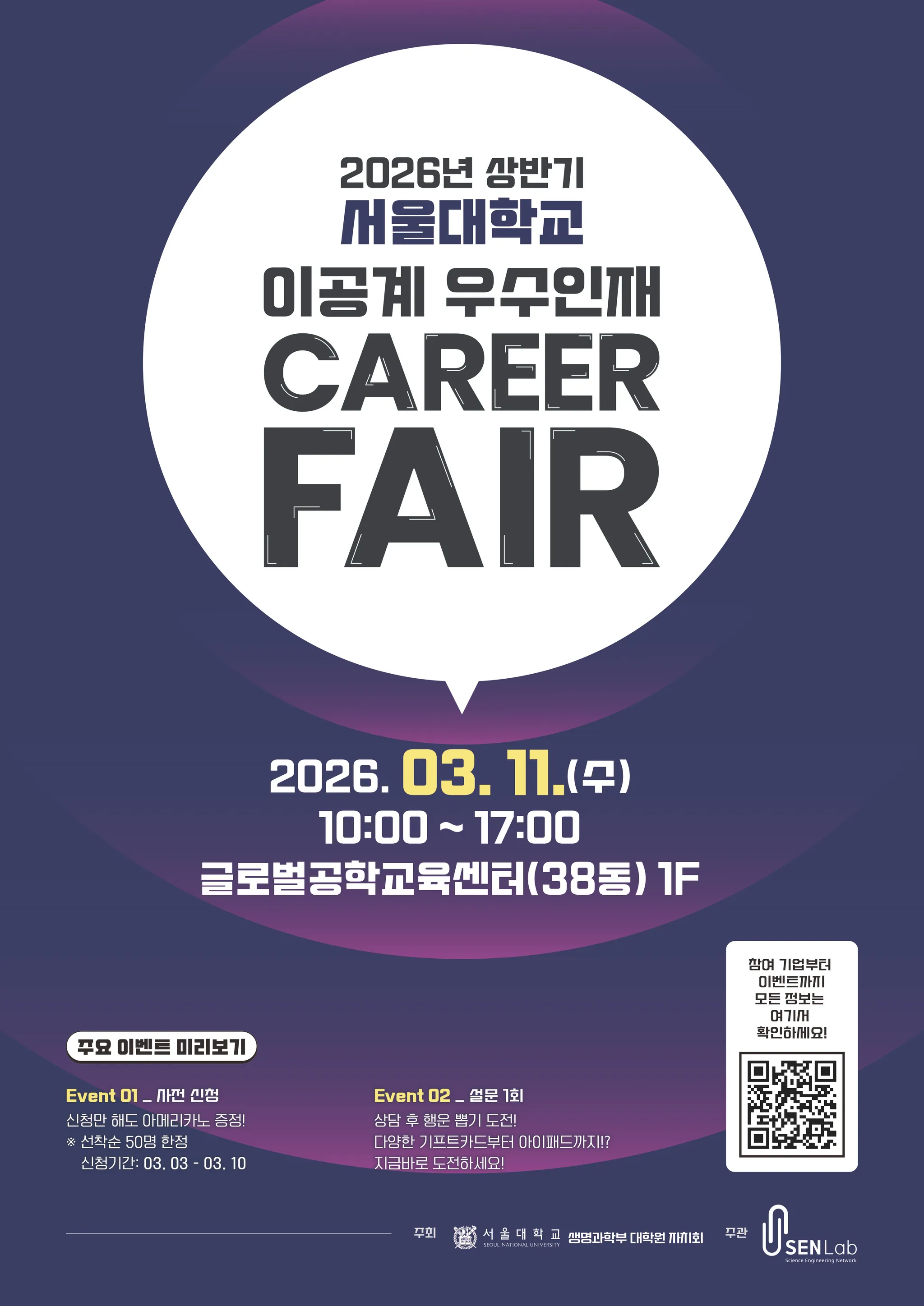 [2026 상반기 서울대학교 이공계 우수인재 CAREER FAIR 개최 안내]