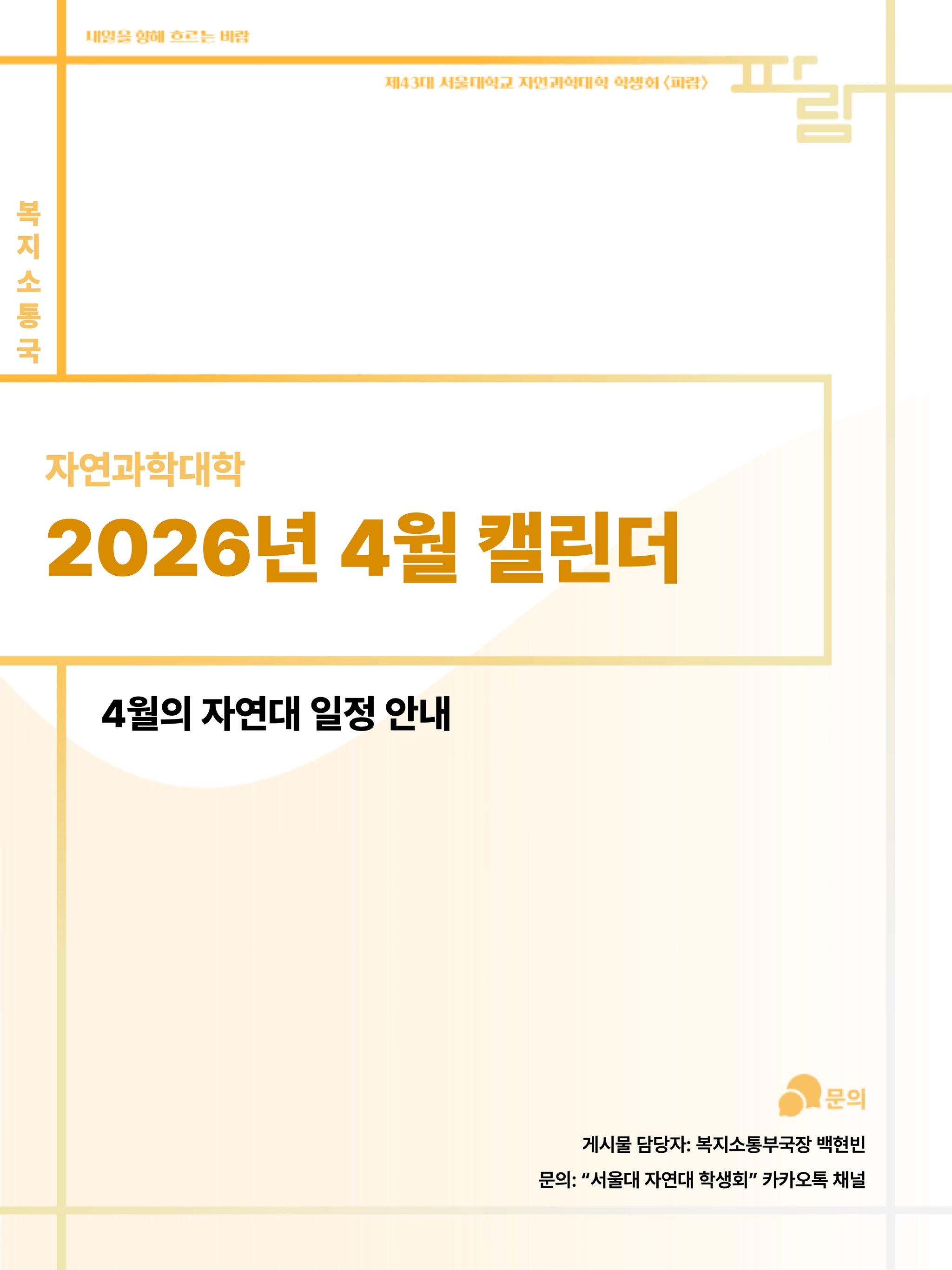 [게시물 담당자: 복지소통부국장 백현빈] [문의: “서울대 자연대 학생회” 카카오톡 채널]