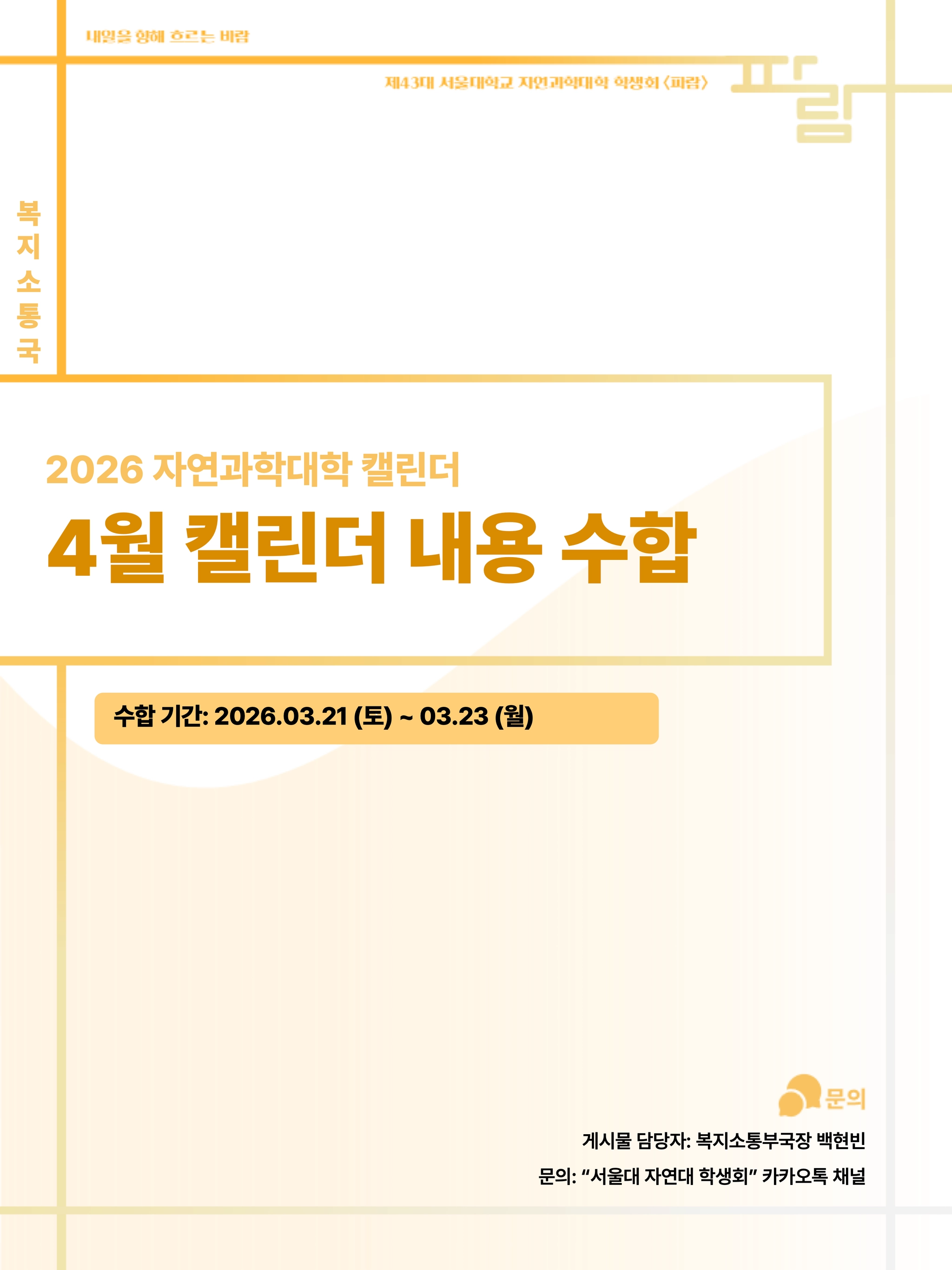 [문의: “서울대 자연대 학생회” 카카오톡 채널]
